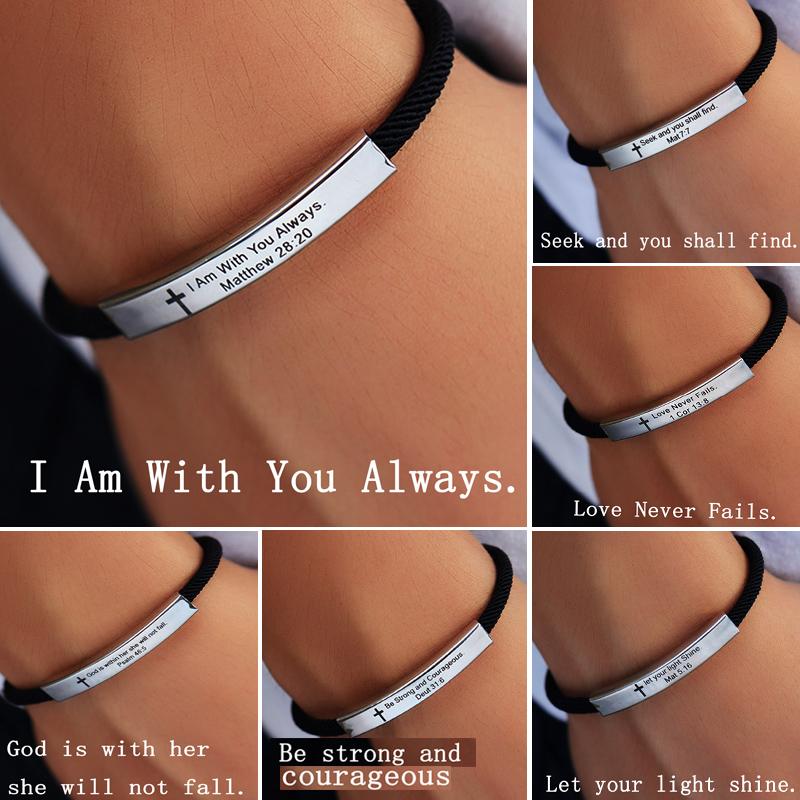Bible Jsem s vámi vždy Vyrytý vzor kříže Nerezová ocel Přívěsek Nastavitelný řetízek Náramek Pro ženy Muže