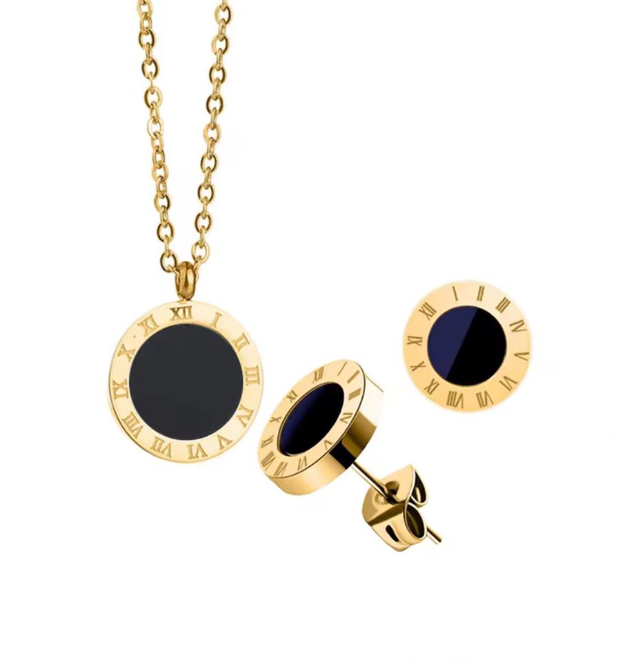 3 ks/Sada 316L Nerezová ocel Černý smalt Římská číslice Přívěsek Náušnice Náhrdelník Sada, Dárky k narozeninám. Dárky na párty