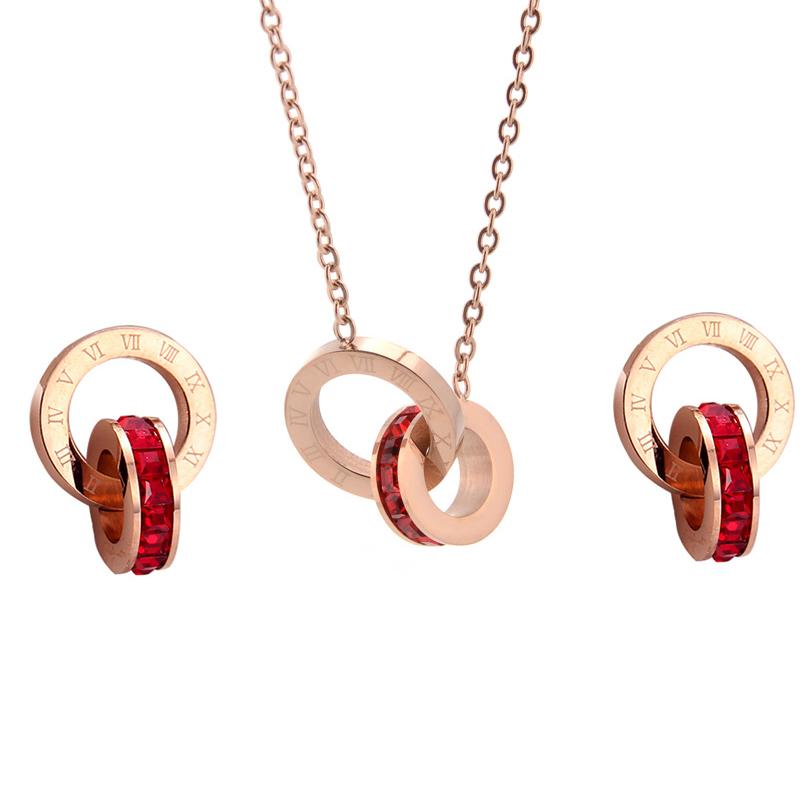 3pcs/set Classic Roman Numeral Crystal Stainless Steel Earrings Necklace for Women Elegant Wedding Party Jewelry Gift