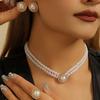 Retro Sada Náhrdelníku, Náušnic a Prstenu z Umělé Perly | Dámské Minimalistické Dvouvrstvé Trendy Šperky
