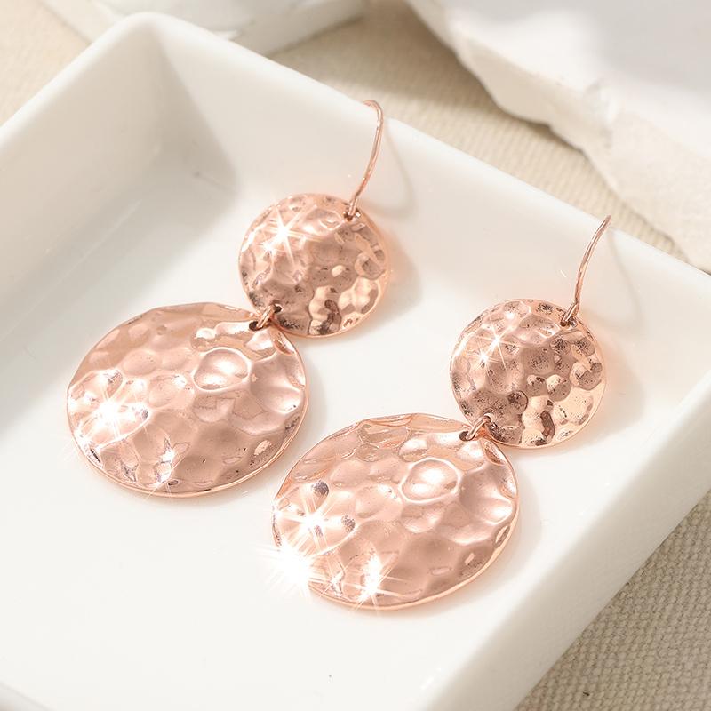 Stručné kulaté měděné visací náušnice pro ženy Kladívkované elegantní přívěskové náušnice Vintage šperkové doplňky Párty dárky