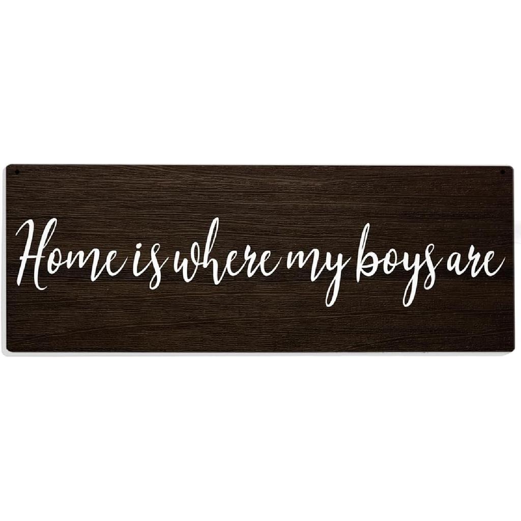 Boy Mom Gifts, New Mom Gifts, Home is Where My Boys are Wood Sign Decor, Farmhouse Wall Hanging Decoration for Home Bedroom, Boy Mom Mother's Day