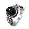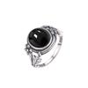Vintage Sterling Silver Natural Black Onyx 8*10mm Ring Flower Shaped Ring Fine Jewelry Finger Ring For Women