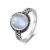 Vintage S Sterling Silver Natural Moonstone Ring Oval 8*10MM Simple Black Twists Ring Party Gifts Fine Jewelry For Women Men