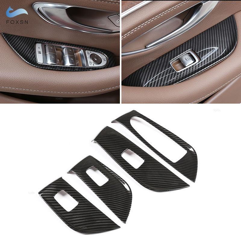 For Mercedes Benz E Class W213 2016 2017 2018 ABS Carbon Fiber Texture Window Switch Button Frame Cover Trim