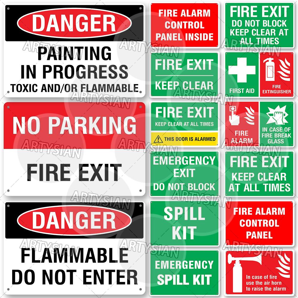 Fire Safety Metal Sign Flammable Warning Emergency Exit Escape Alarm Extinguisher Instruction Signage Assembly Hose Reel Plaque