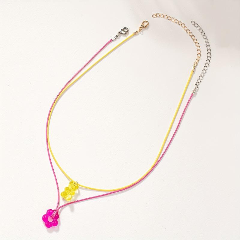 A set of woven acrylic sets, flower bear necklace sets, simple and cute.