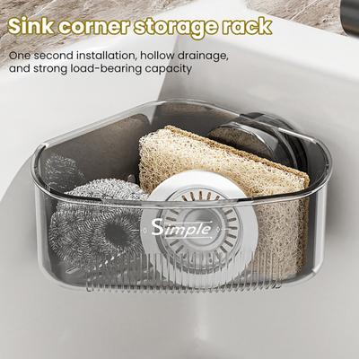 Držák na houbičky s přísavkou Rohová polička do dřezu Velká kapacita Silná nosnost Snadná instalace Kuchyňský organizér do dřezu