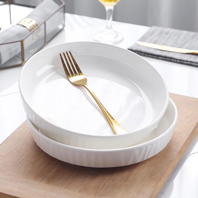 8palcové hluboké bílé keramické talíře s proužky, sada 2 kusů