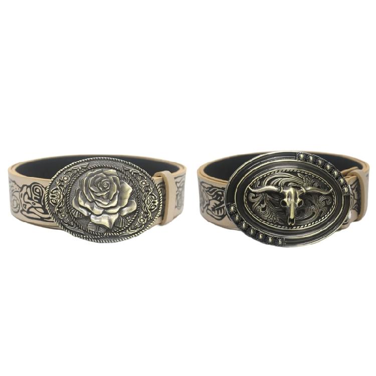 Ethnic Metal Buckle Embossed Belt Engraved Belt PU Leather Adult Cowboy Belt