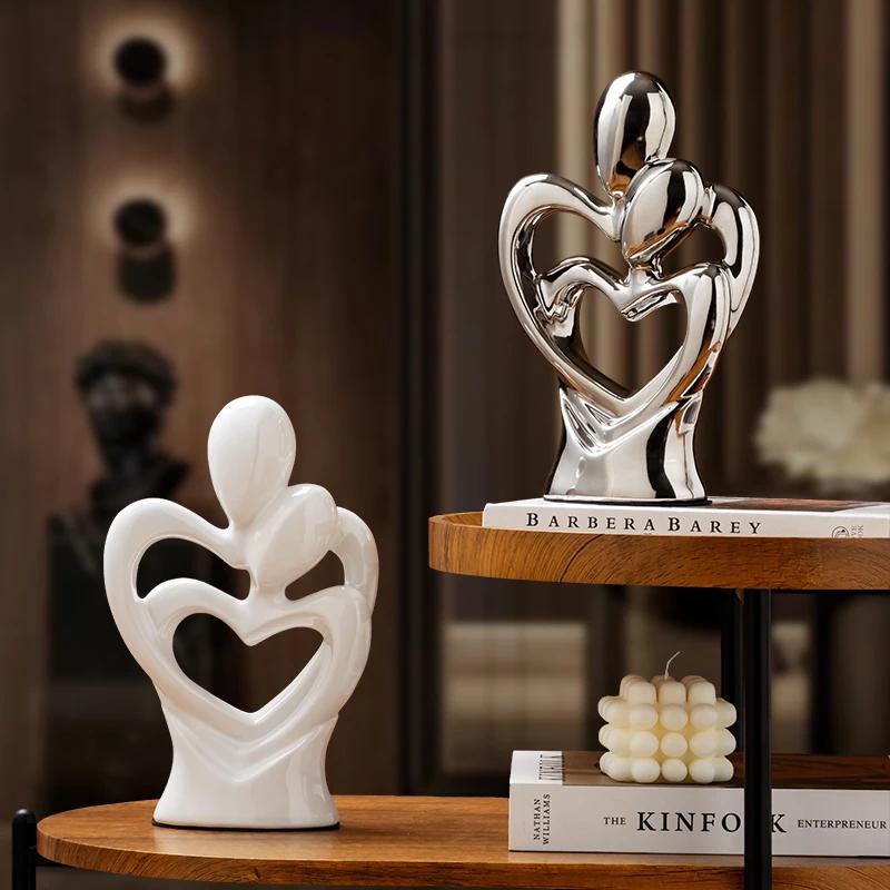 Minimalist couple statue Heart to Heart Couple Ornament Resin character sculptures Light luxury wedding gift home room decor