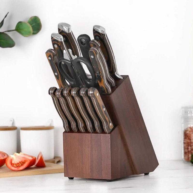 15 Slots Wood Knife Holder Universal Solid Wooden Knife Block Without Knives Kitchen Storage Knife Racks Kitchen Accessories