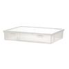 Crafted from plastic, this clear storage box is water resistant and resists deformation and supports heavy items while maintaining space saving structure.