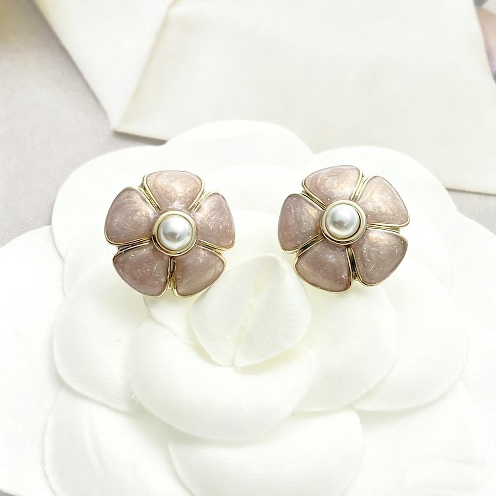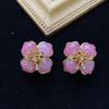 Pink flower pearl earrings Adding Rivet Elements Fashionable and exquisite high-end customized Gift