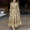 ZANZEA Dámské ležérní dlouhé šaty s kulatým výstřihem a dlouhým rukávem s volným potiskem