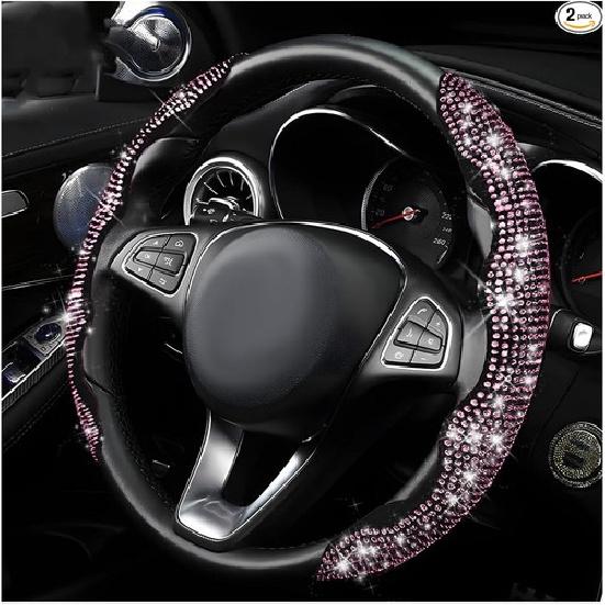 2 PCS Steering Wheel Cover, 15 Inches Crystal Diamond Bling Cover for Auto-Pink