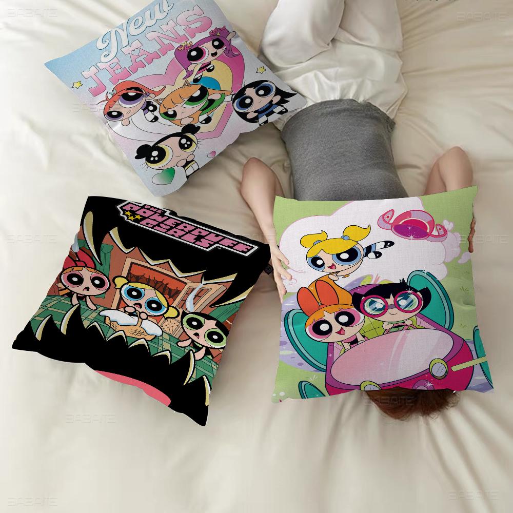The Power-puff-Girls Decorative Room Aesthetics Pillow Case Home Decor Bedroom Sofa Bed Couch Pillow Cover 45x45