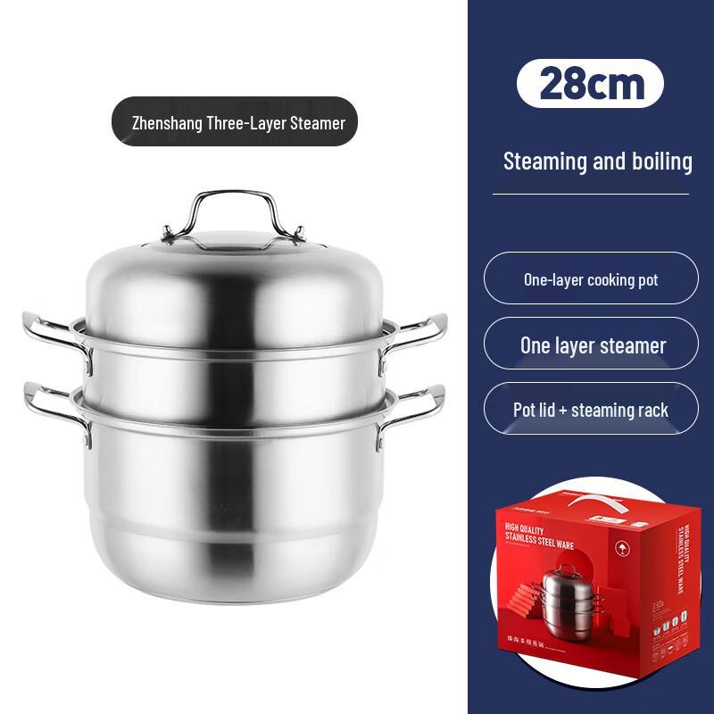 Lechu Heli Zhenshang 410 Stainless Steel 28cm Three-Layer Multi-Purpose Steamer