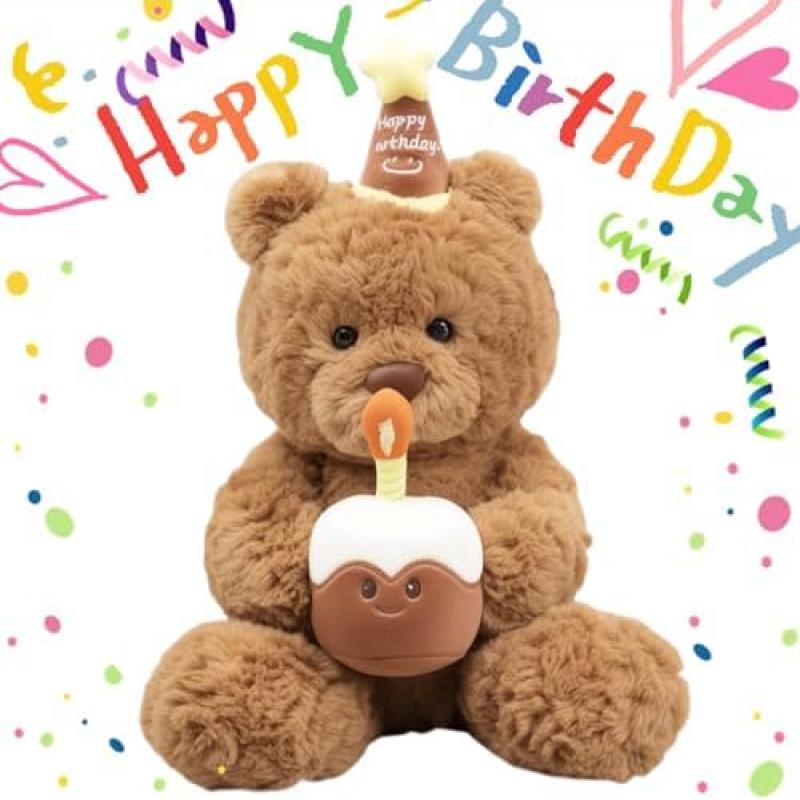 GYHWOFUL 30cm Teddy Bear Plush Toy Set with Cake & Hat, Cute Birthday Gift, Soft Stuffed Animal for Girls Boys Kids Christmas Birthday Present