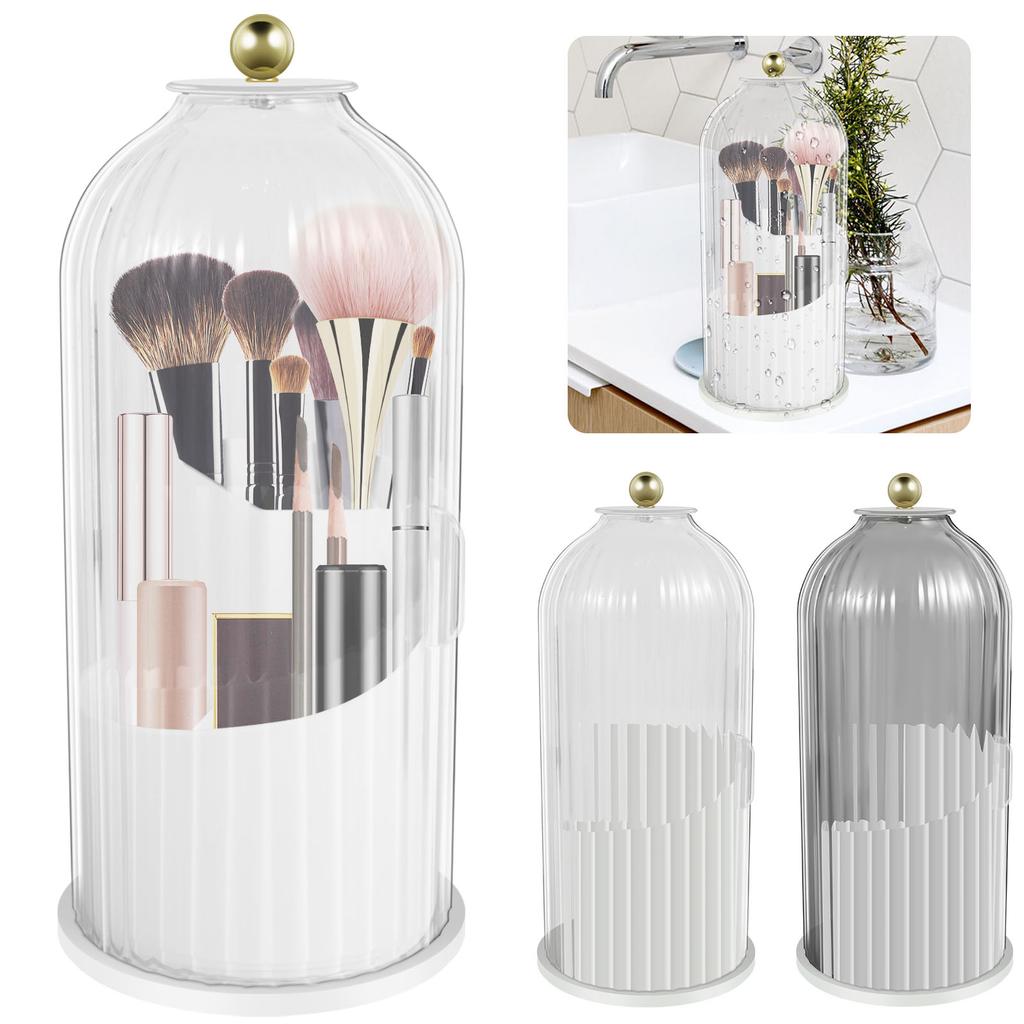 Makeup Brush Holder with Dustproof Cover 360 Rotating Make Up Brush Holder Organizer Compartmentalized Makeup Brush Organizer