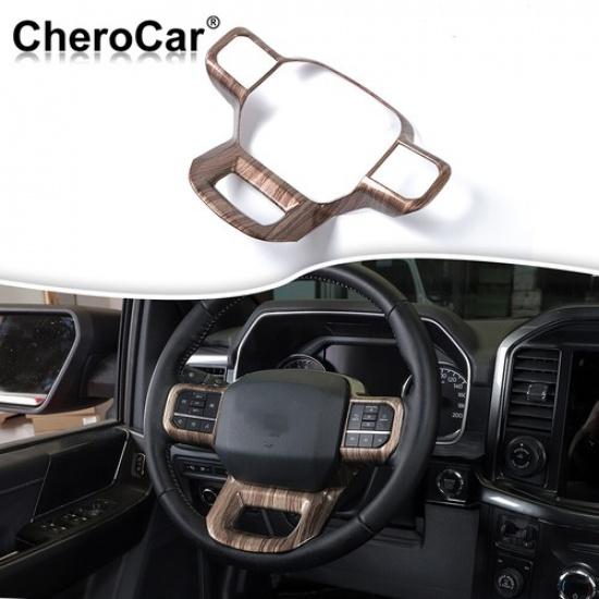 Steering Wheel Panel Frame Cover Interior Trim for Ford F150 22 Wood Grain