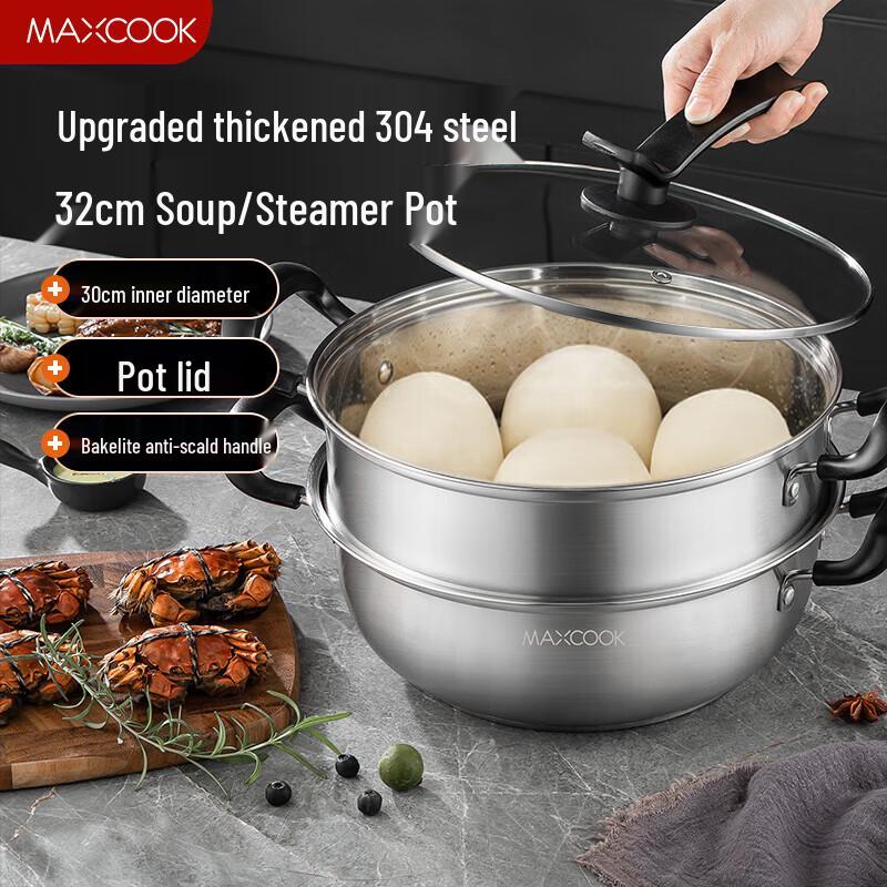 MAXCOOK 32cm 2-Layer Stainless Steel Steamer Pot