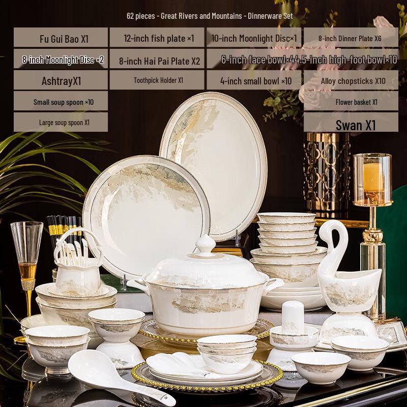 62-Piece Jingdezhen Ceramic Dinnerware Set