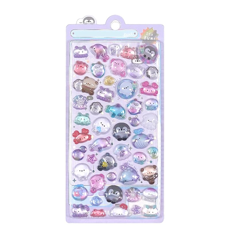 Cute 3D Pukupuku Stickers, Hollow, 3D Bubble Sticker Set, Reward Stickers for Planners and Diaries, Floating Cartoon Style DIY, Sparkly Girl