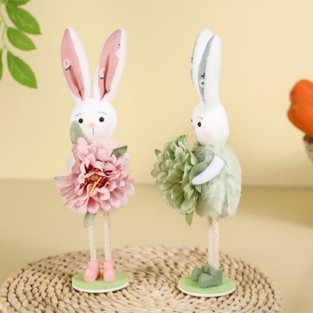 Standing Flower Rabbit Figurine Cute Bunny Doll Figures Easter Bunny Ornament Kids Gifts