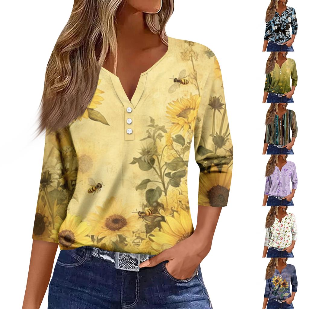 Women's 3/4 Sleeve Shirts Graphic Tees Shirts Casual Basic Tops Pullovers