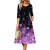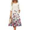 3/4 Sleeve Women's Dress Casual Flowy A,Line Midi Tshirt Dresses With Pockets Crewneck Vocation Boho Beach Sundress
