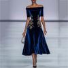 Women's Velvet Minied Dress With Keyhole Neckline, Pearl Embellishment, Long Sleeves, Elegant Vintage A,line Dress