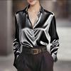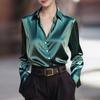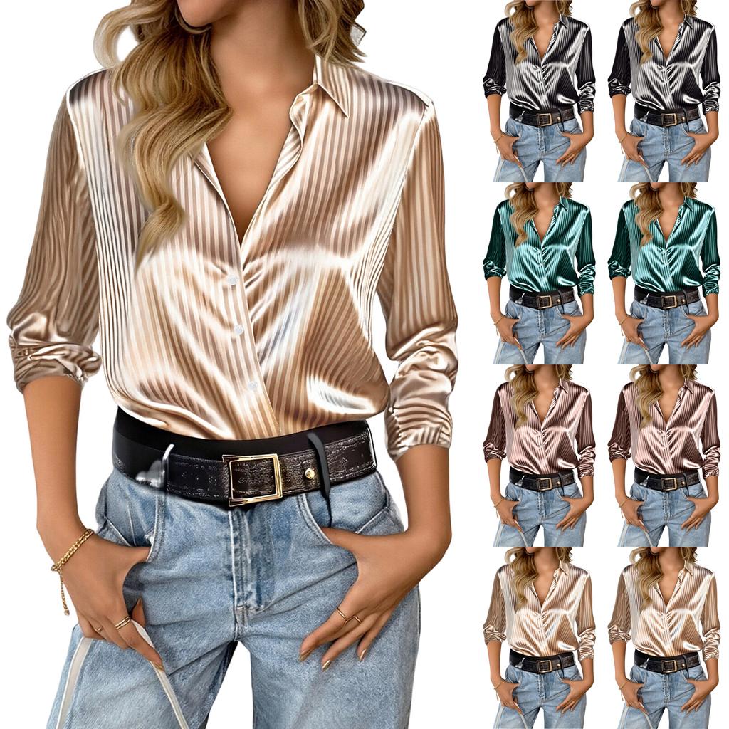 Elegant And Stylish Retro Striped Collared Long,sleeved Shirt For Women