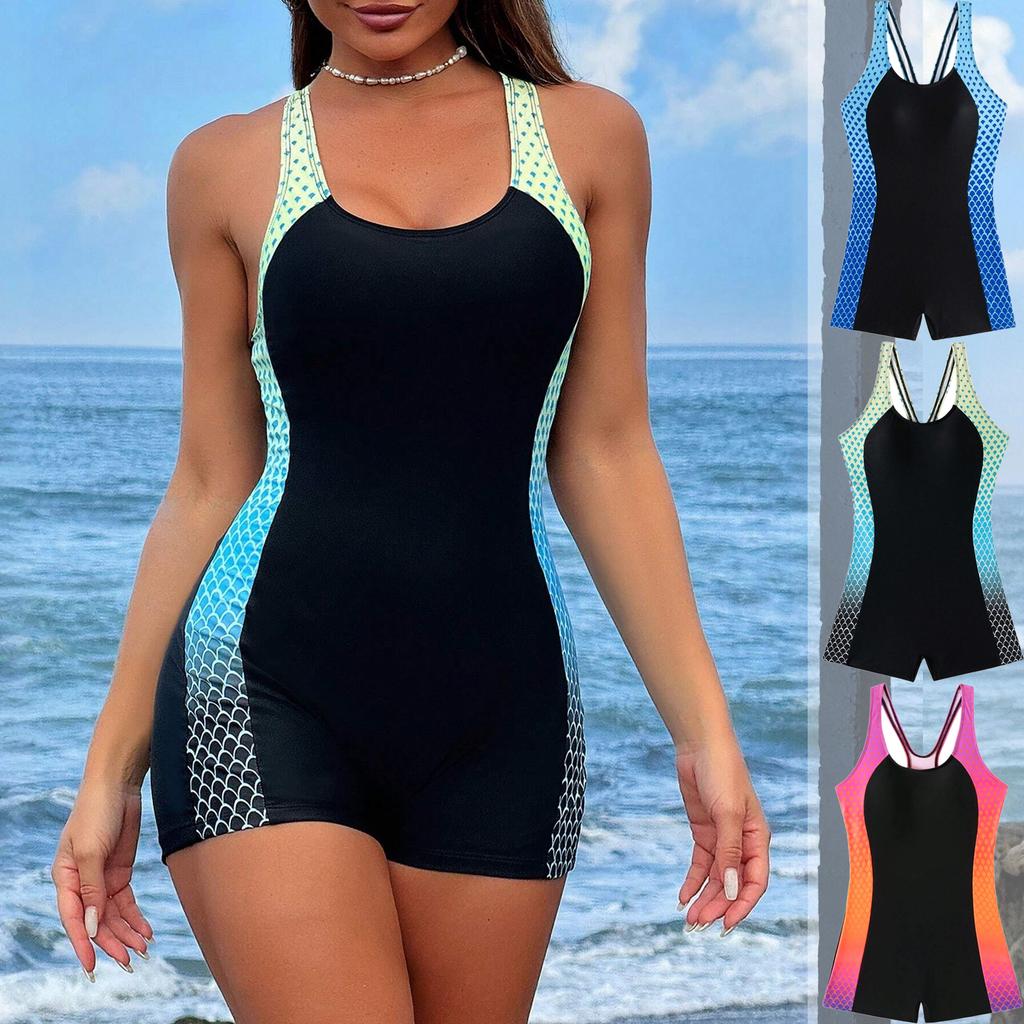 Women's Color-blocked Backless One-piece Swimsuit