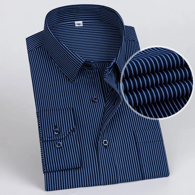 Men's Formal Shirt Long Sleeve Solid Color Striped Pocket Fashion Business Office Professional Wear Social White Shirt