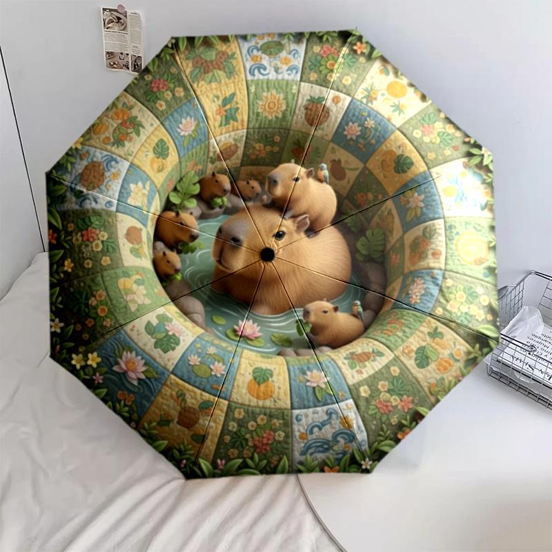 1 ks automatický skládací deštník - kreslený vzor, přenosný a skládací design s 8 žebry, vánoční narozeninové dárky