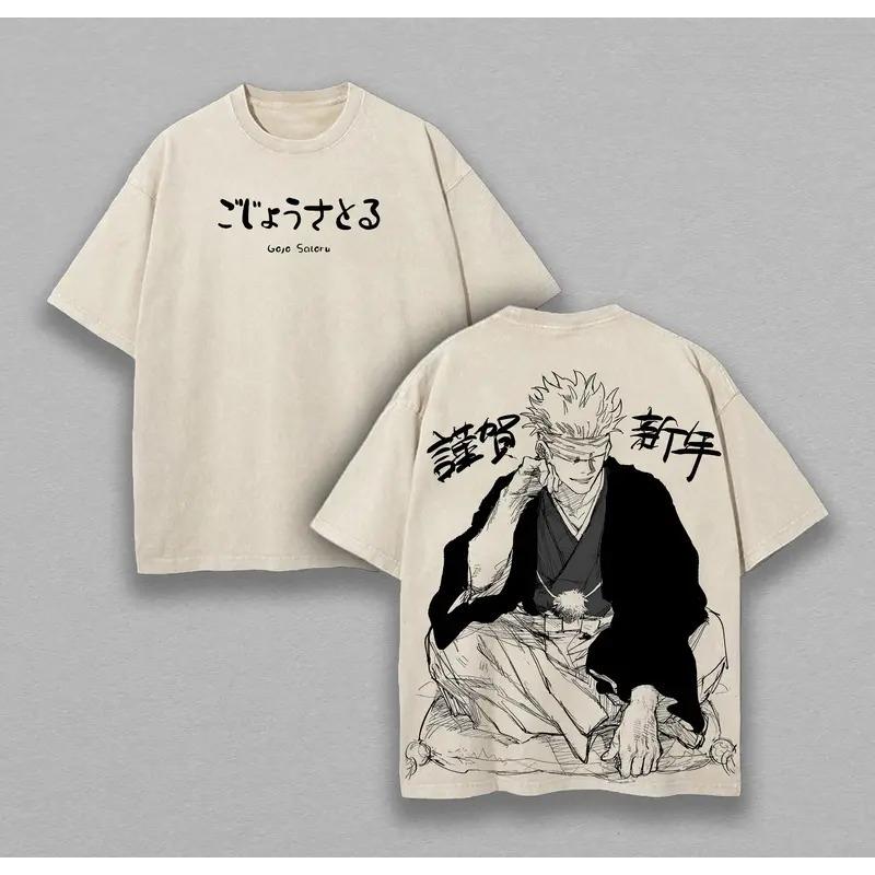 Anime Jujutsu Kaisen Gojo Satoru Printed Tee Men Women Washed Cotton T-shirts Short Sleeve Casual T Shirt Harajuku Male Tshirt