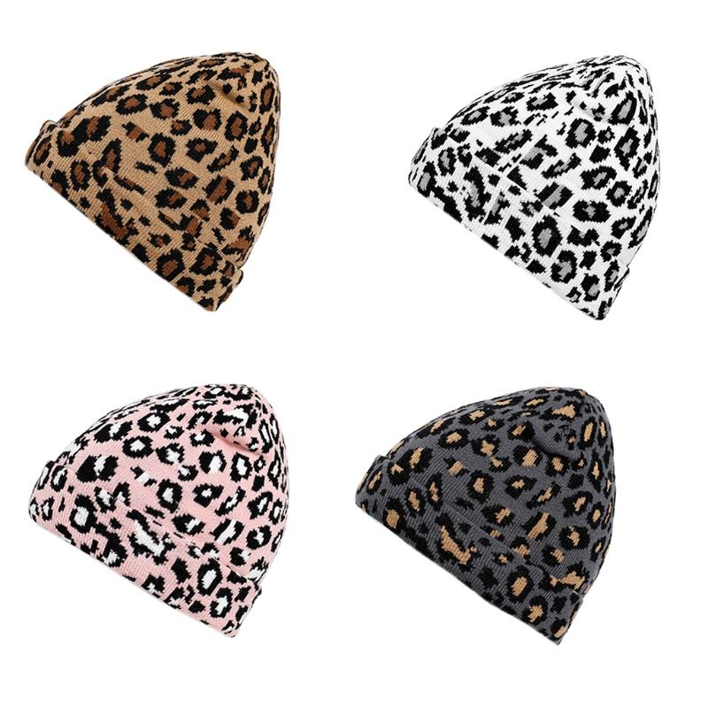 Fashion Leopard-print Knitted Hat Beanie Hat Woolen Hat for Outdoor Activities