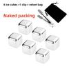 6Pcs Stainless Steel Ice Block Set for Whiskey Wine Cooling Cube Chilling Rock Party Bar Tool Color Box Reusable Chilling Stones
