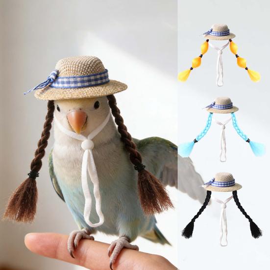 The charming design combines a straw hat with double braids, creating an adorable look that suits parrots, hamsters, and other small pets, instantly turning them into cute little trendsetters. Made from lightweight materials, this hat won't burden your pet or interfere with their daily activities. A versatile and affordable accessory, it adds joy and charm to pet care.