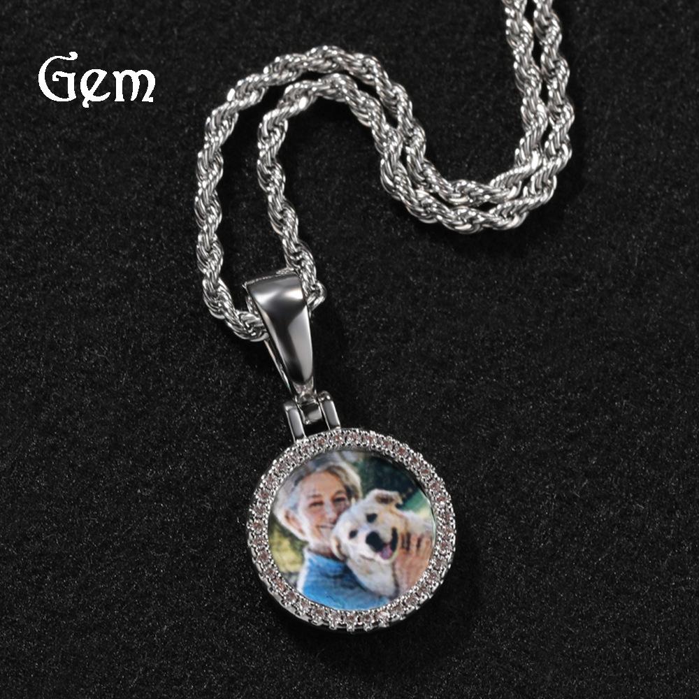 Creative micro-set zircon mini round memory photo frame pendant trendy DIY color printing photo necklace