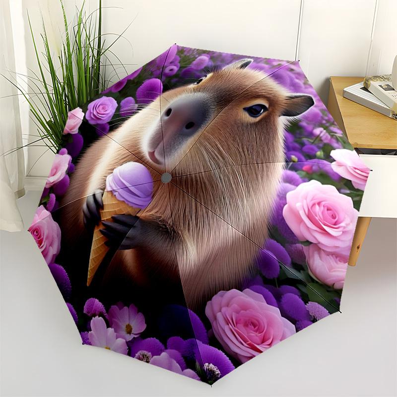 1pc CapybaraAutomatic Open/close Folding Umbrella, Compact Portable Travel Umbrella, Perfect Birthday/Holiday, Cute Umbrella y035