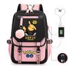 Contrasting Color Neutral Universal Schoolbag Cute Cartoon Print Primary And Secondary School Students Spine Protection Double Shoulder Usb Backpack