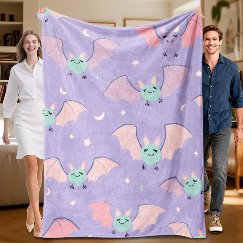 1 piece purple bat-themed flannel blanket, soft, suitable for sofa, bed, office, all-season use.