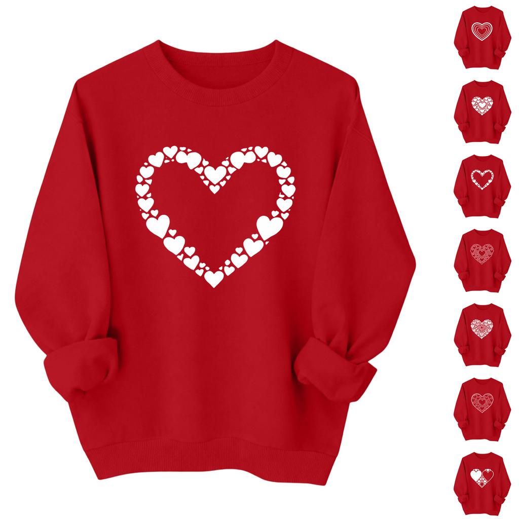 Valentines Sweatshirts For Women Love Heart Graphic Pullover R-neck Long Sleeve Tops Valentine's Day Sweatshirt