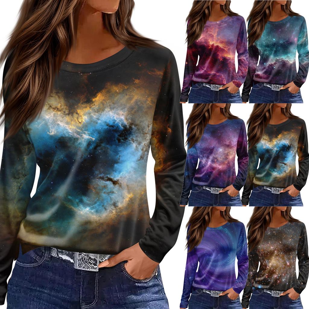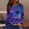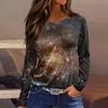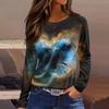 Women's Fashion Casual Slit Hem Round Neck Long Sleeve Loose Printed T,Shirt Ladies Top