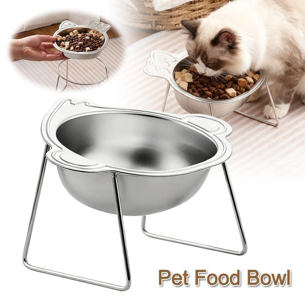 Cute Stainless Steel Raised Cat Bowl Slanted with Stand Cat Food Bowls Tilted Neck Guard Pet Feeder Pet Supplies