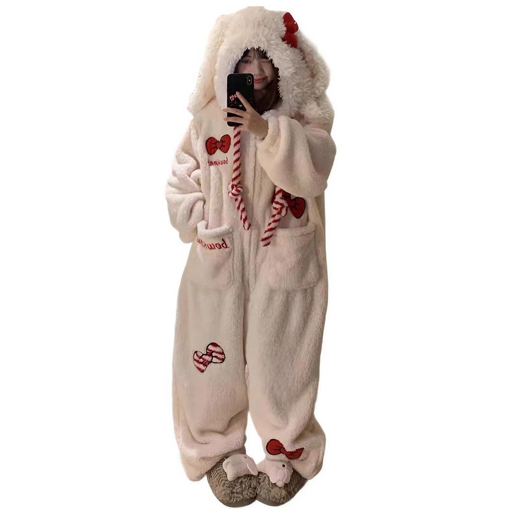 Flanelové Kigurumi Pyžamo Králík Nadměrná Velikost s a Nadýchaný Zvířecí Kostým na Podzim a Perfektní pro Doma a Zůstat v Teple [MTKCNTL] Dámská Kapuce,