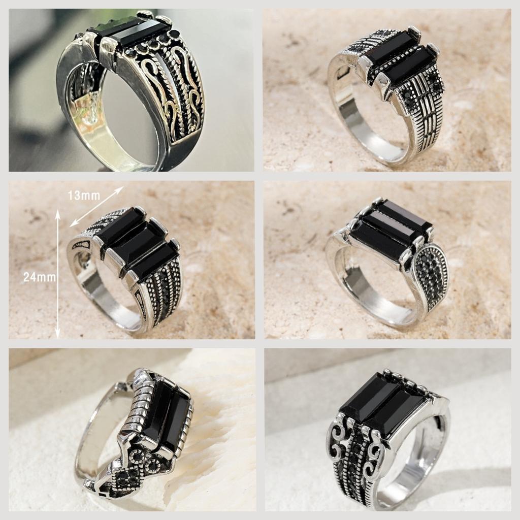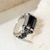 Vintage Pattern Black Face Zircon Ring Fashion Personality Trend Matching Alloy Hand for Men