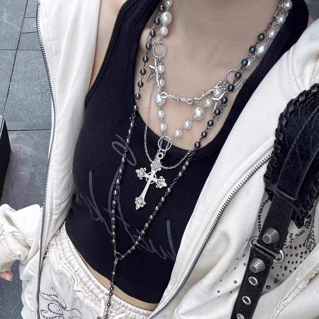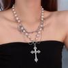 Retro Gotický Náhrdelník Kříž Punkový Styl Vrstvený Svetrový Řetízek Halloweenské Doplňky Náhrdelník z Imitace Perel Sváteční Dárek
